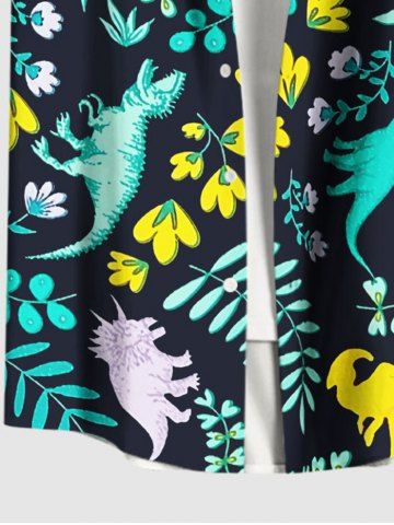 Plus Size Dinosaur Flower Leaf Branch Print Hawaii Button Pocket Shirt For Men - Deep Blue - 6xl