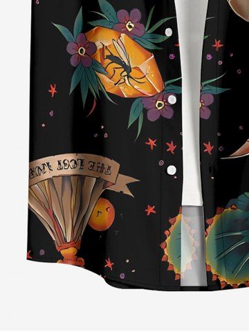 Plus Size Dinosaur Flower Print Hawaii Button Pocket Shirt For Men - Black - 5xl