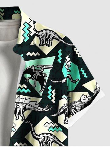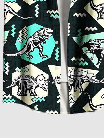 Short Sleeves Shirts > Plus Size Dinosaur Geometric Graphic Zig Zag Print Hawaii Button Pocket Shirt For Men