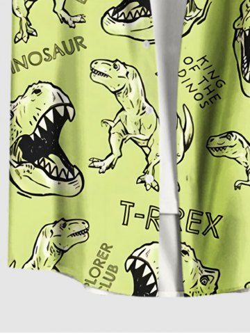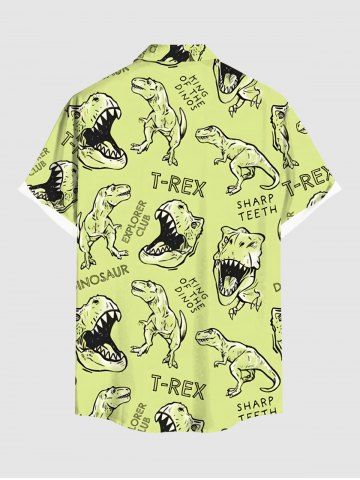 Plus Size Dinosaur Letters Print Hawaii Button Pocket Shirt For Men - Light Green - Xl