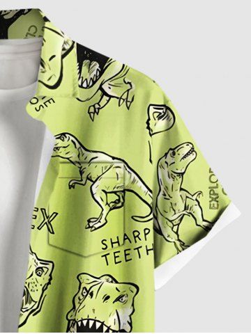Short Sleeves Shirts > Plus Size Dinosaur Letters Print Hawaii Button Pocket Shirt For Men