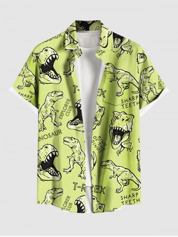 Short Sleeves Shirts > Plus Size Dinosaur Letters Print Hawaii Button Pocket Shirt For Men