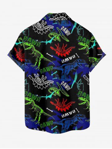 Short Sleeves Shirts > Plus Size Dinosaur Letters Print Hawaii Button Pocket Shirt For Men