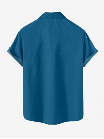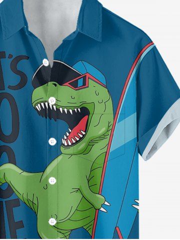 Short Sleeves Shirts > Plus Size Dinosaur Letters Sea Waves Print Hawaii Button Pocket Shirt For Men