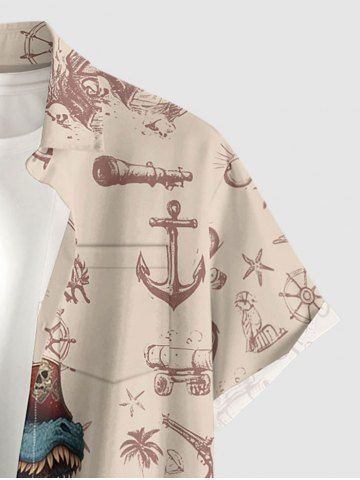 Plus Size Dinosaur Pirate Ship Rudder Print Buttons Pocket Hawaii Shirt For Men - Tan - 4xl