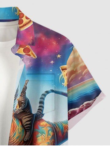 Short Sleeves Shirts > Plus Size Dinosaur Pizza Rainbow Print Buttons Pocket Hawaii Shirt For Men