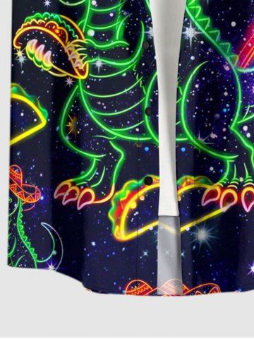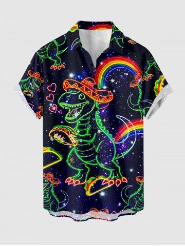 Plus Size Dinosaur Rainbow Hot Dog Heart Galaxy Print Buttons Pocket Hawaii Shirt For Men - Black - L