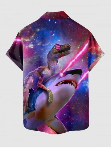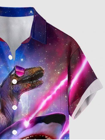 Plus Size Dinosaur Shark Ombre Galaxy Print Hawaii Button Pocket Shirt For Men - Purplish Red - 4xl