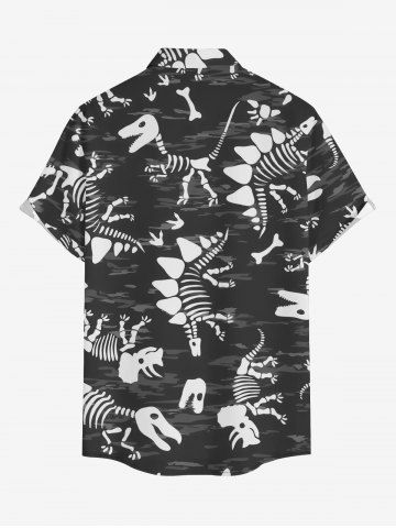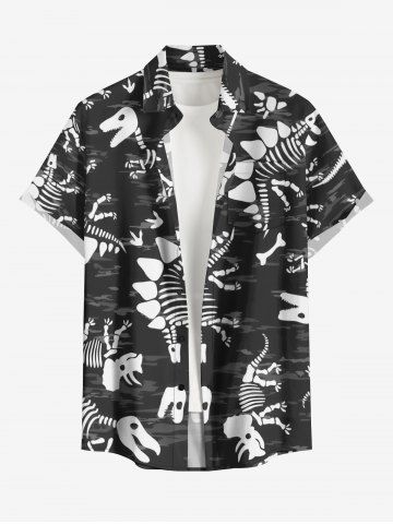 Plus Size Dinosaur Skeleton Print Buttons Pocket Hawaii Shirt For Men - Black - 3xl