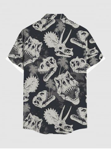 Plus Size Dinosaur Skulls Coconut Tree Print Buttons Pocket Hawaii Shirt For Men - Black - S