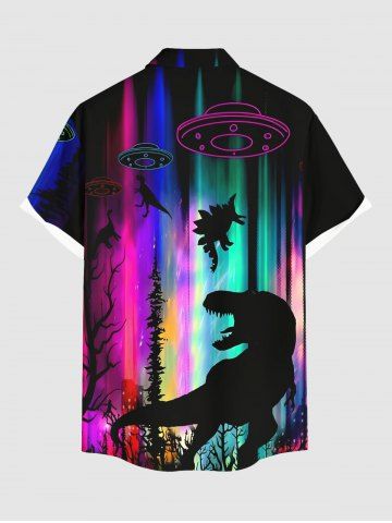 Plus Size Dinosaur UFO Ombre Aurora Print Hawaii Button Pocket Shirt For Men - Black - S