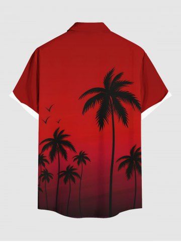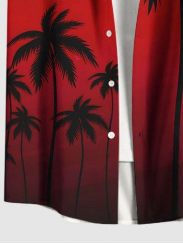 Plus Size Dip Dye Ombre Coconut Tree Print Hawaii Button Pocket Shirt For Men - Red - 3xl