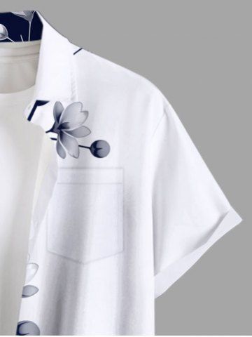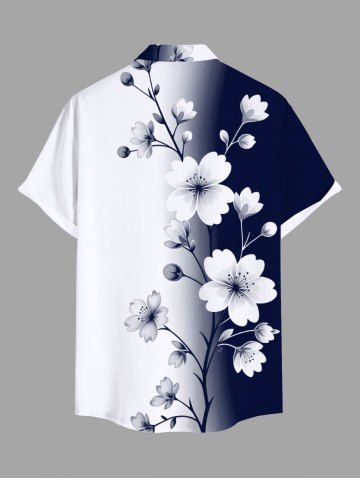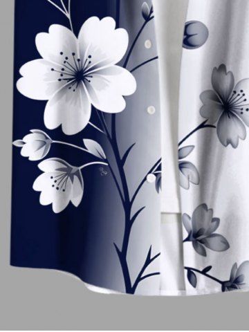 Plus Size Dip Dye Ombre Flower Branch Print Hawaii Button Pocket Shirt For Men - White - 6xl