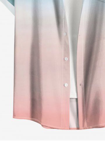 Plus Size Dip Dye Ombre Print Hawaii Button Pocket Shirt For Men - Dark Turquoise - M