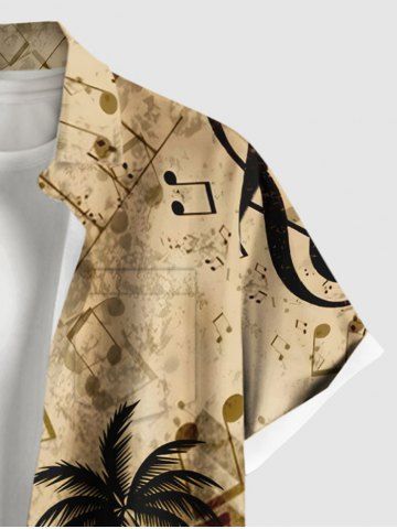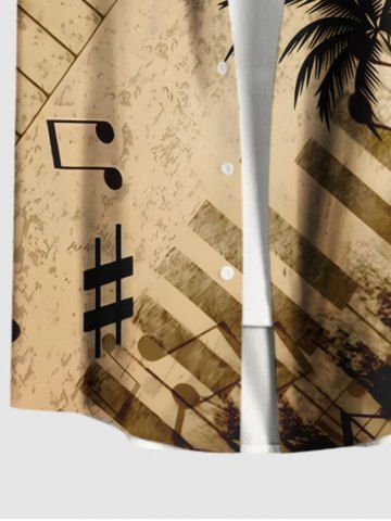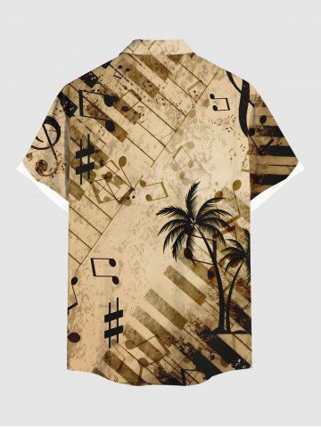 Plus Size Distressed Coconut Tree Music Symbol Piano Print Hawaii Button Pocket Shirt For Men - Light Coffee - M