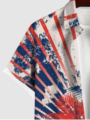 Short Sleeves Shirts > Plus Size Distressed Coconut Tree Patriotic American Flag Light Beam Tie Dye Print Button Pocket Shirt For Men