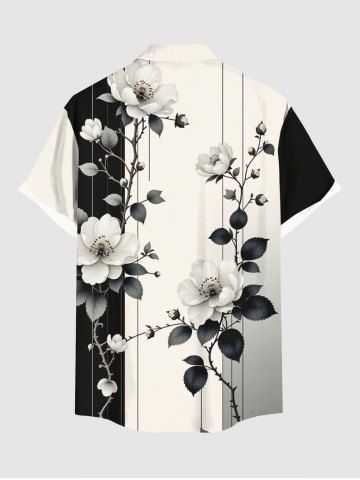 Short Sleeves Shirts > Plus Size Distressed Flower Leaf Branch Ombre Colorblock Print Hawaii Button Pocket Shirt For Men