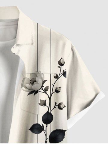 Short Sleeves Shirts > Plus Size Distressed Flower Leaf Branch Ombre Colorblock Print Hawaii Button Pocket Shirt For Men