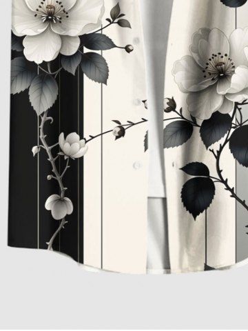 Plus Size Distressed Flower Leaf Branch Ombre Colorblock Print Hawaii Button Pocket Shirt For Men - Black - 4xl