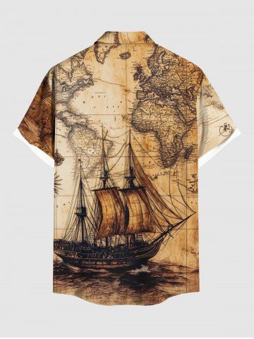 Short Sleeves Shirts > Plus Size Distressed Map Sailboat Print Hawaii Cruise Button Pocket Shirt For Men