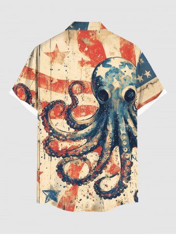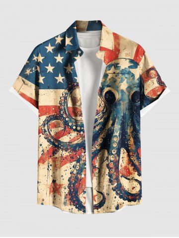 Short Sleeves Shirts > Plus Size Distressed Octopus Patriotic American Flag Print Hawaii Button Pocket Shirt For Men