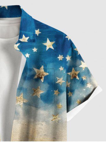 Plus Size Distressed Patriotic American Flag Print Button Pocket Shirt For Men - Multi-a - L