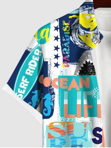 Short Sleeves Shirts > Plus Size Dophin Letters Stars Geometric Colorblock Print Hawaii Button Pocket Shirt For Men