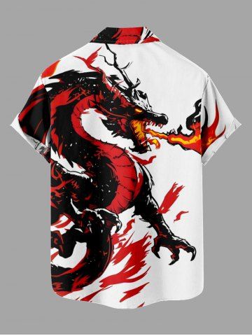 Plus Size Dragon Fire Flame Print Button Pocket Shirt For Men - White - 5xl