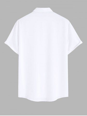 Plus Size Dragon Flower Fire Flame Print Button Pocket Shirt For Men - White - Xl