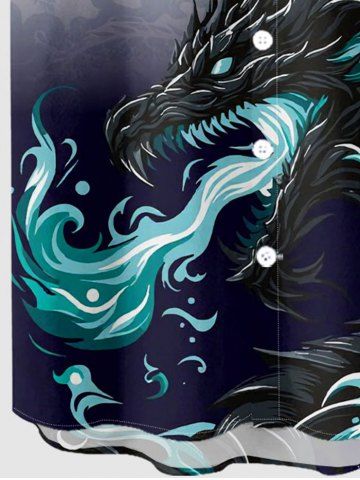 Short Sleeves Shirts > Plus Size Dragon Ombre Print Button Pocket Shirt For Men