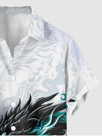 Plus Size Dragon Ombre Print Button Pocket Shirt For Men - White - L