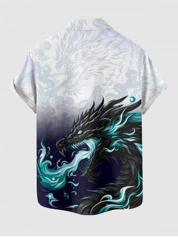 Short Sleeves Shirts > Plus Size Dragon Ombre Print Button Pocket Shirt For Men