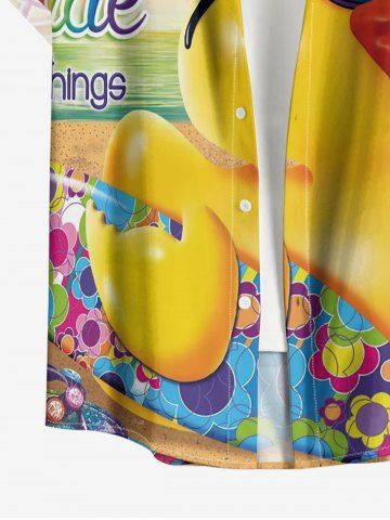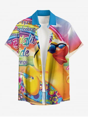 Plus Size Duck Flower Ombre Rainbow Letter Print Hawaii Button Pocket Shirt For Men - Yellow - L