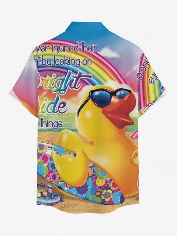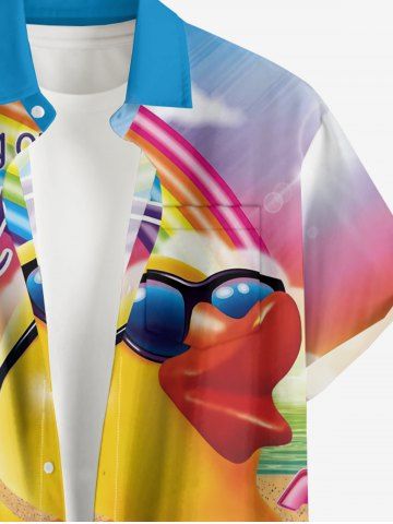Short Sleeves Shirts > Plus Size Duck Flower Ombre Rainbow Letter Print Hawaii Button Pocket Shirt For Men