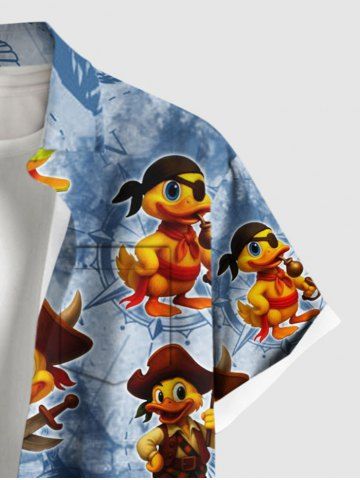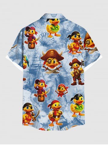 Plus Size Duck Pirate Sailboat Shell Parrot Print Hawaii Cruise Buttons Pocket Shirt For Men - Powder Blue - 4xl