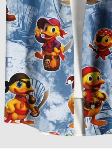 Plus Size Duck Pirate Sailboat Shell Parrot Print Hawaii Cruise Buttons Pocket Shirt For Men - Powder Blue - 5xl