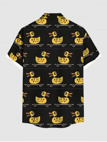 Plus Size Duck Skateboard Print Hawaii Button Pocket Shirt For Men - Black - S