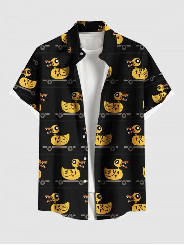Plus Size Duck Skateboard Print Hawaii Button Pocket Shirt For Men - Black - 4xl