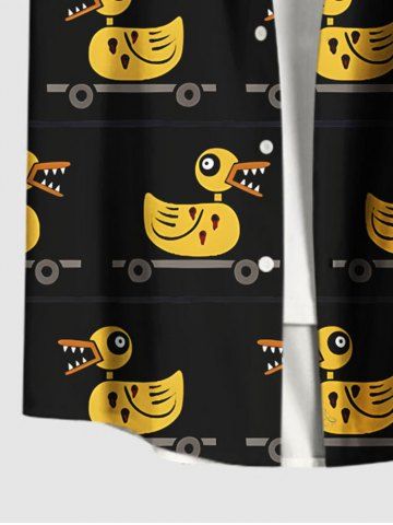 Plus Size Duck Skateboard Print Hawaii Button Pocket Shirt For Men - Black - 5xl