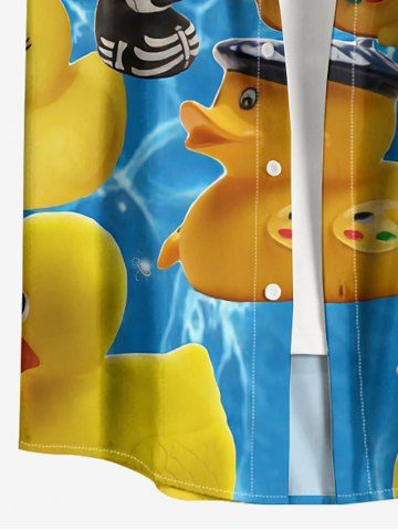 Plus Size Duck Skeleton Pond Print Hawaii Button Pocket Shirt For Men - Yellow - S