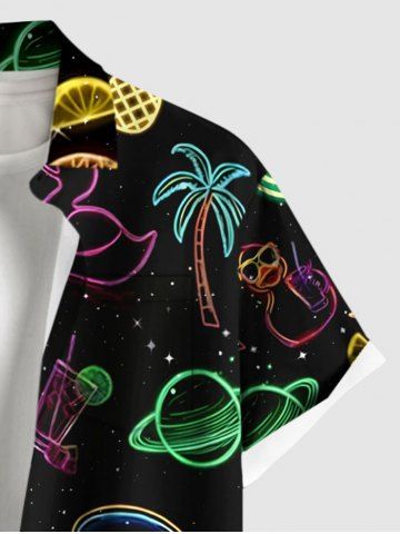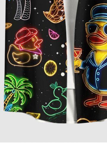 Plus Size Ducks Coconut Tree Watermelon Pineapple Planet Print Buttons Pocket Hawaii Shirt For Men - Black - Xl