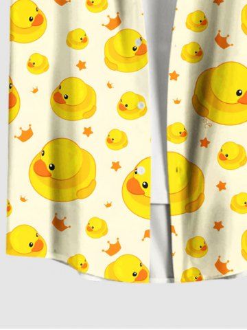 Plus Size Ducks Crown Star Print Buttons Pocket Hawaii Shirt For Men - Yellow - 6xl