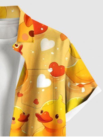 Plus Size Ducks Heart Print Buttons Pocket Hawaii Shirt For Men - Yellow - 4xl