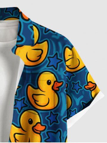 Plus Size Ducks Stars Print Buttons Pocket Hawaii Shirt For Men - Blue - M