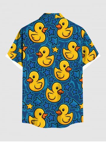 Plus Size Ducks Stars Print Buttons Pocket Hawaii Shirt For Men - Blue - 2xl