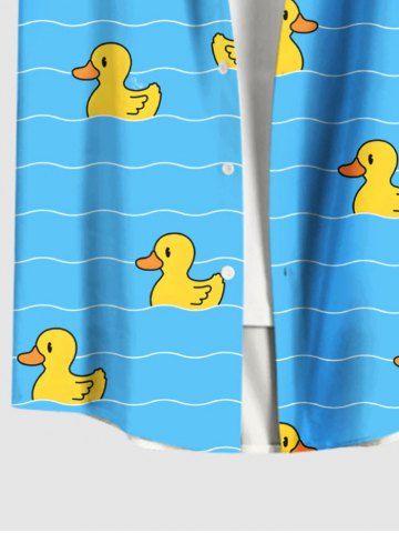 Plus Size Ducks Wave Line Print Buttons Pocket Hawaii Shirt For Men - Sky Blue - 5xl