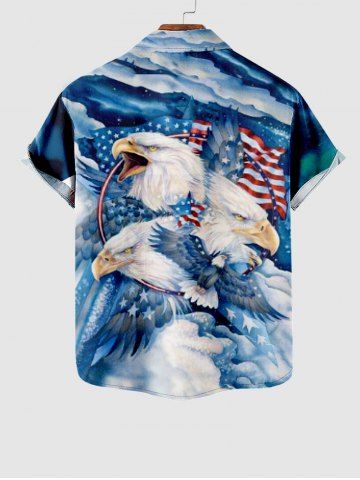 Short Sleeves Shirts > Plus Size Eagle Cloud American Flag Print Button Pocket Shirt For Men