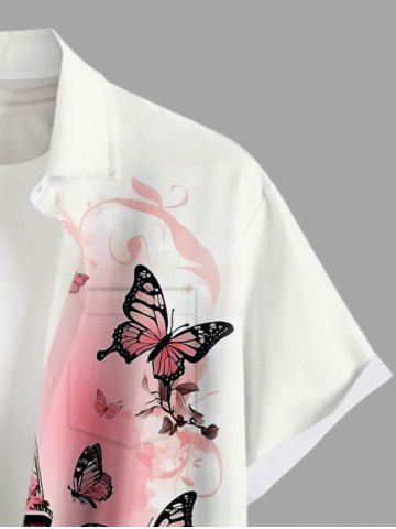Plus Size Eiffel Tower Butterfly Flowers Print Buttons Pocket Hawaii Shirt For Men - White - S