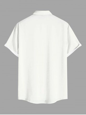 Plus Size Eiffel Tower Butterfly Flowers Print Buttons Pocket Hawaii Shirt For Men - White - 5xl