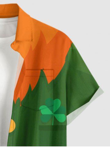 Short Sleeves Shirts > Plus Size Elf Costume Print St. Patrick's Day Button Pocket Shirt For Men